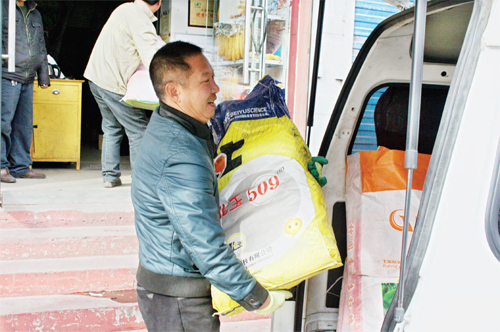 2月13日,原平市宇峰種業(yè)工作人員正在為種子銷售點運送各種優(yōu)良種子。目前該市農(nóng)資部門已經(jīng)為農(nóng)民們準備好了各種化肥、種子、農(nóng)機具等,為今年春耕備耕做好了準備。(趙春曉 攝)