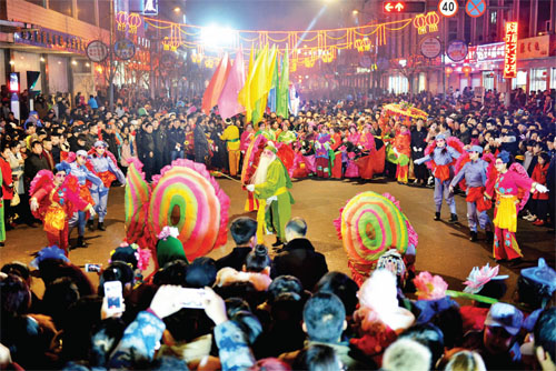沒有了往年的大型彩門,沒有了往年的大型彩車,也沒有了往年的大型文藝隊(duì)伍,但彩燈仍然亮起來了,旺火仍然燃起來了,鼓樂也響起來了,人群也聚起來了,禮花也打起來了……2016年繁峙縣的元宵節(jié)是在一片節(jié)儉氛圍中進(jìn)行的,雖然聲勢規(guī)模小了,但元宵節(jié)的氛圍依然濃厚,人們歡樂的笑聲仍然在街道上蕩漾,繁峙人民過了一個(gè)節(jié)儉簡約、文明健康的元宵佳節(jié)。(李曉軍 攝)