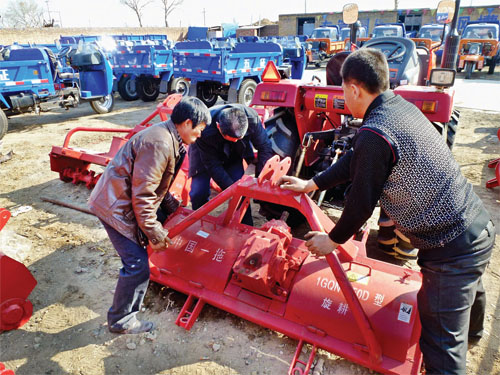 七九河開,八九燕來。春耕生產(chǎn)開始之際,農(nóng)民們開始為春耕做準(zhǔn)備。圖為原平市大陽村村民王師傅正在購買農(nóng)機。(李玉生 攝)