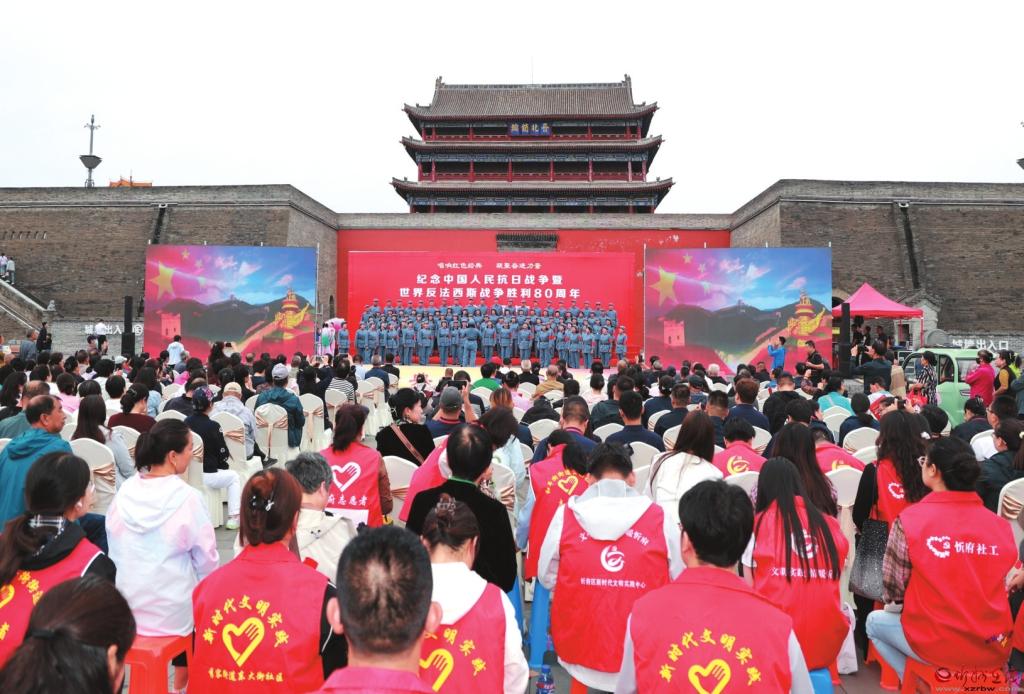 9月5日,由山西省文學(xué)藝術(shù)界聯(lián)合會(huì)指導(dǎo)、中共忻州市委宣傳部主辦、忻州市文學(xué)藝術(shù)工作者聯(lián)合會(huì)承辦的“唱響紅色經(jīng)典,凝聚奮進(jìn)力量”——紀(jì)念中國(guó)人民抗日戰(zhàn)爭(zhēng)暨世界反法西斯戰(zhàn)爭(zhēng)勝利80周年文藝展演在忻州古城北城門(mén)樓廣場(chǎng)舉行。(本報(bào)記者 張存良攝)