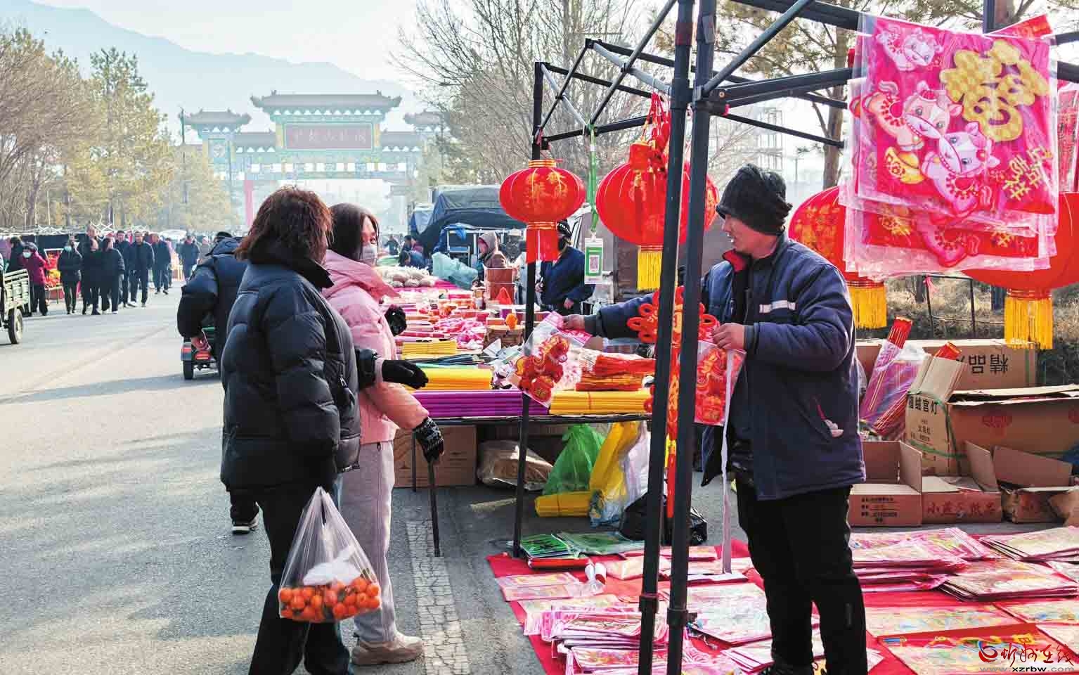 臘月時(shí)節(jié),定襄縣河邊鎮(zhèn)年貨大集迎來(lái)采購(gòu)高峰。集市上各類年貨琳瑯滿目,村民們穿梭其間,購(gòu)買年節(jié)食品、干貨副食,討價(jià)聲與歡笑聲交織,市井煙火中洋溢著濃濃的新春氣息。圖為村民在集市選購(gòu)年貨。(張錦娟攝)