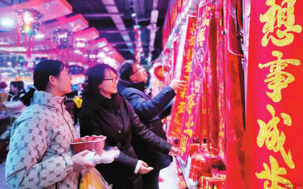 2月9日,顧客在忻州城區(qū)家家利超市選購(gòu)春聯(lián)。春節(jié)的腳步越來(lái)越近,我市各大超市和集貿(mào)市場(chǎng)的各式春聯(lián)、生肖貼畫(huà)等春節(jié)飾品琳瑯滿目,處處洋溢著祥和喜慶的節(jié)日氛圍。(宮清華攝)