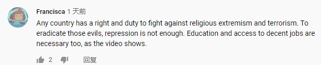 “任何國家都有權(quán)利和義務(wù)打擊宗教極端主義和恐怖主義。要根除這些邪惡……教育和獲得體面工作的機(jī)會也是必要的。”近日,一名海外網(wǎng)友Francisca在看完中央廣播電視總臺旗下CGTN播出的《巍巍天山——中國新疆反恐記憶》紀(jì)錄片后這樣評價(jià)。