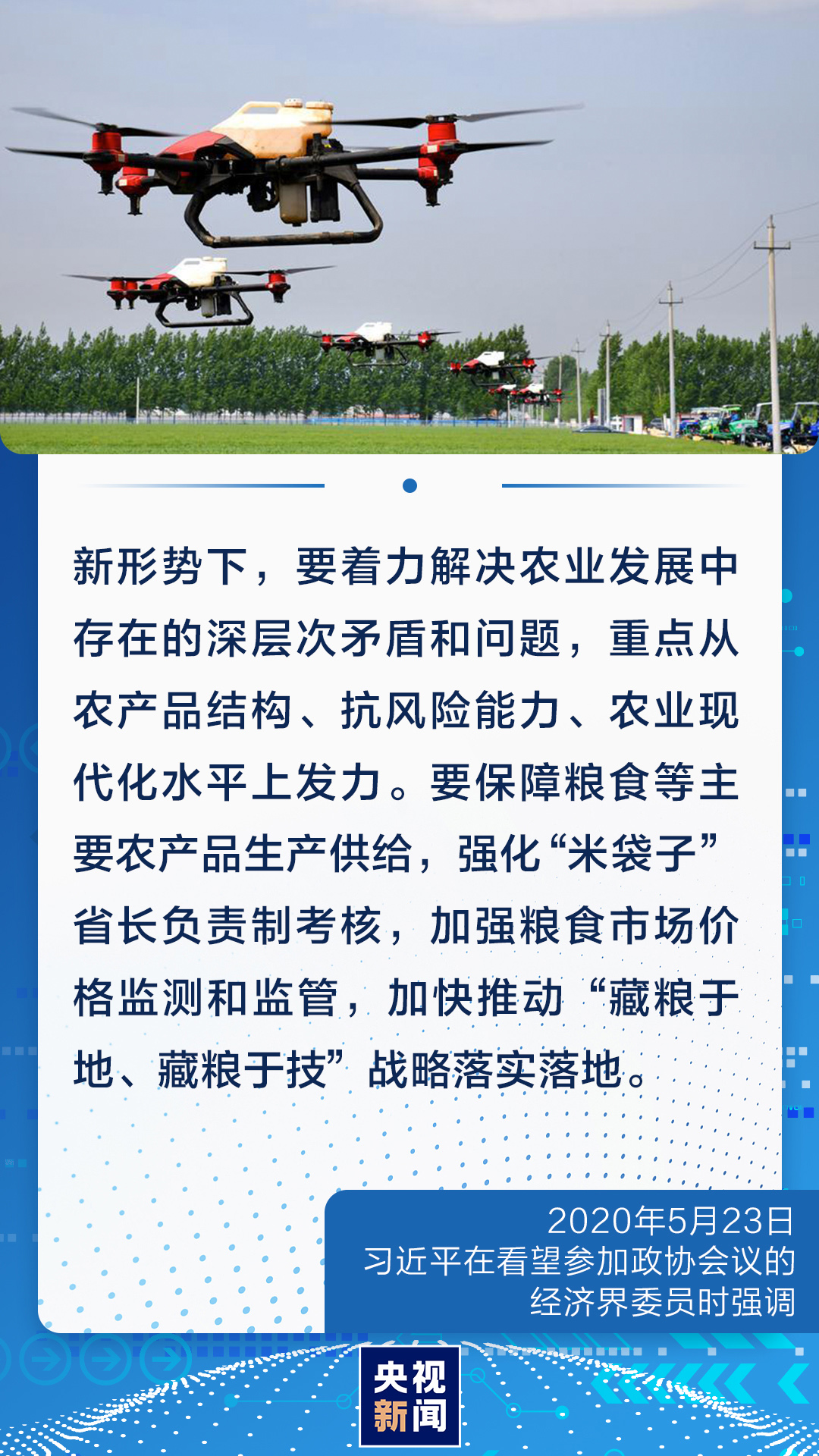 對(duì)我們這樣一個(gè)有著14億人口的大國(guó)來(lái)說(shuō),農(nóng)業(yè)基礎(chǔ)地位任何時(shí)候都不能忽視和削弱,手中有糧、心中不慌在任何時(shí)候都是真理。今年開(kāi)春,習(xí)近平總書(shū)記對(duì)全國(guó)春季農(nóng)業(yè)生產(chǎn)工作作出重要指示強(qiáng)調(diào),越是面對(duì)風(fēng)險(xiǎn)挑戰(zhàn),越要穩(wěn)住農(nóng)業(yè),越要確保糧食和重要副食品安全。
