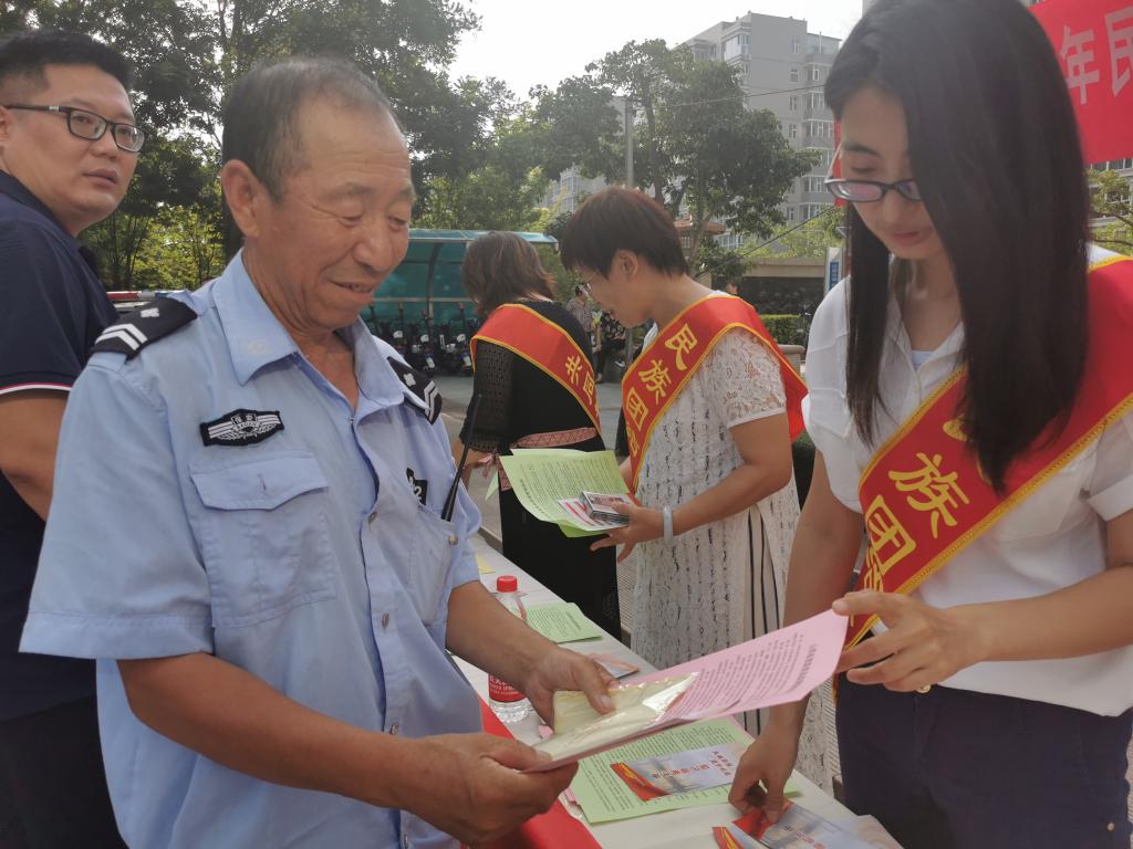通過采取懸掛宣傳標語、設(shè)置咨詢臺進行政策講解、發(fā)放民族團結(jié)進步宣傳單等方式,向社區(qū)群眾宣傳介紹黨的民族政策,普及民族團結(jié)進步知識,凝聚民族團結(jié)進步正能量,鑄牢中華民族共同體意識。