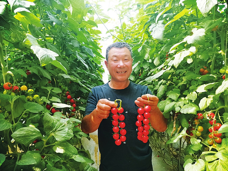 西曲河村村民喬耀文拿著一串串豐收的蔬果型番茄露出喜悅的笑容。種植戶的腰包鼓了,西曲河村邁向全面小康的步伐更堅(jiān)定有力了。 李全宏攝