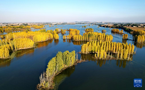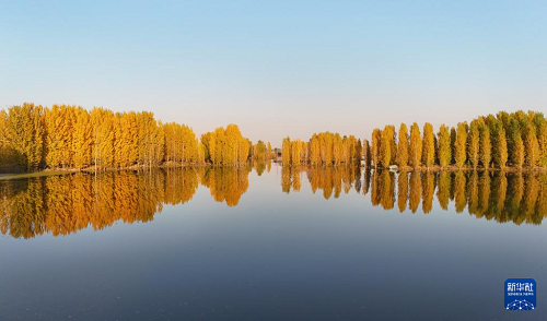 初冬時(shí)節(jié),在河北省邢臺(tái)市隆堯縣亦城村泜河沿岸,樹葉金黃,與水面、河岸相映襯,勾勒出一幅美麗和諧的自然畫卷。