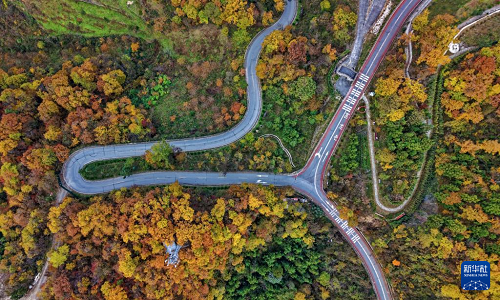 11月10日拍攝的湖北省襄陽市保康縣馬橋鎮(zhèn)景色(無人機照片) 。(新華社發(fā) 陳泉霖 攝)