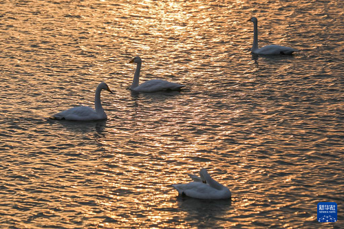 進(jìn)入冬季,大批白天鵝來到河南省三門峽市黃河濕地棲息越冬。近年來,隨著當(dāng)?shù)夭粩嗉訌婞S河沿岸濕地生態(tài)保護(hù)工作,白天鵝的數(shù)量逐年增加。目前,三門峽黃河岸邊40余萬畝淺灘濕地已迎來萬余只白天鵝。