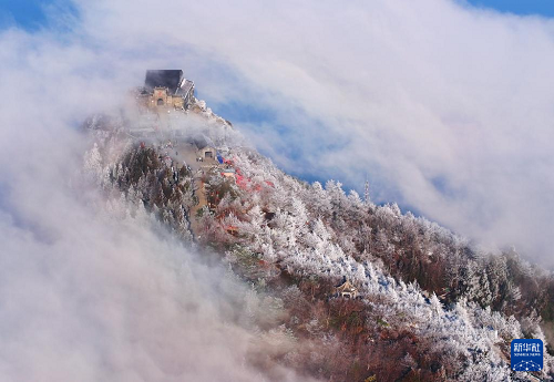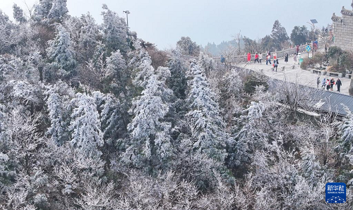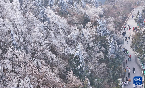 連日來,湖南省衡陽市南岳衡山風景區(qū)出現(xiàn)霧凇云海景觀,壯美如畫的景色吸引眾多游客前來觀賞游玩。