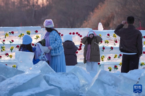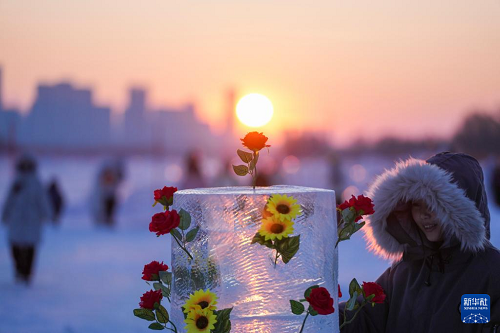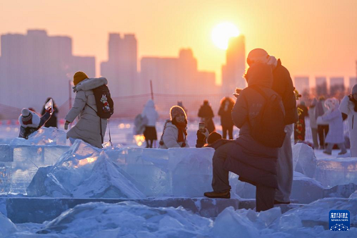 時(shí)下,“冰城”哈爾濱市正值冰雪旅游旺季。松花江哈爾濱段一處采冰場(chǎng),由于大量堆積高純凈度的冰塊,而被游客稱為“鉆石海”,成為網(wǎng)紅景區(qū)。只要是晴好天氣,都會(huì)有許多游客來(lái)到“鉆石?!本皡^(qū),欣賞浪漫的落日美景。