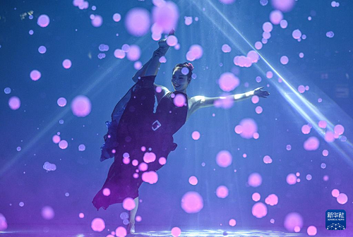 1月14日,參賽選手進(jìn)行水下極限舞蹈表演。(新華社記者 蒲曉旭 攝)