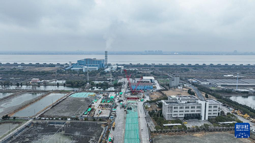 1月20日拍攝的錢塘江高鐵盾構(gòu)隧道施工現(xiàn)場(chǎng)(無人機(jī)照片)。(新華社發(fā) 王欣 攝)