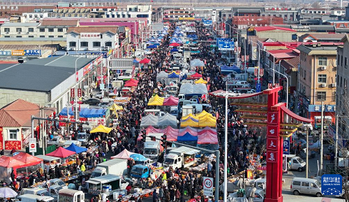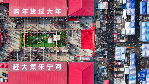 這是1月26日拍攝的天津蘆臺大集(無人機(jī)照片)。(新華社記者 孫凡越 攝)