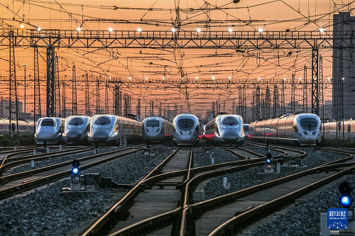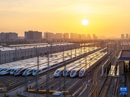 春運(yùn)大幕即將拉開(kāi),中國(guó)鐵路西安局集團(tuán)有限公司西安動(dòng)車(chē)段內(nèi),高鐵動(dòng)車(chē)組靜候待發(fā)。