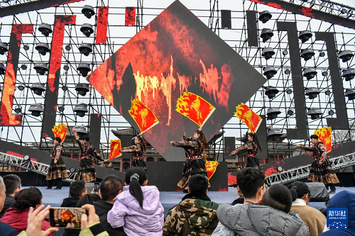 這是2月27日在山西省晉中市平遙古城拍攝的文藝表演。(新華社記者 曹陽 攝)