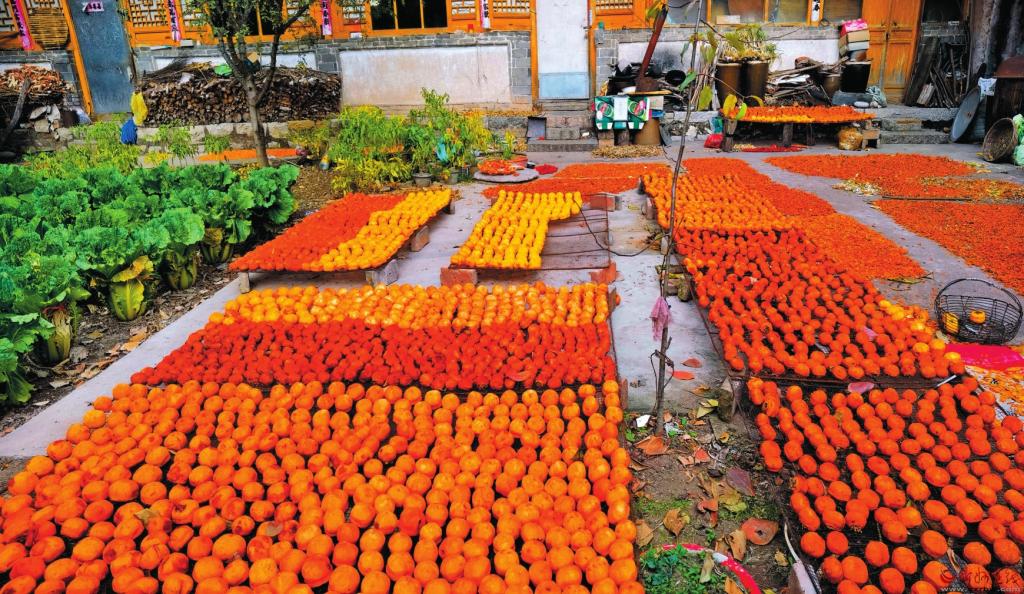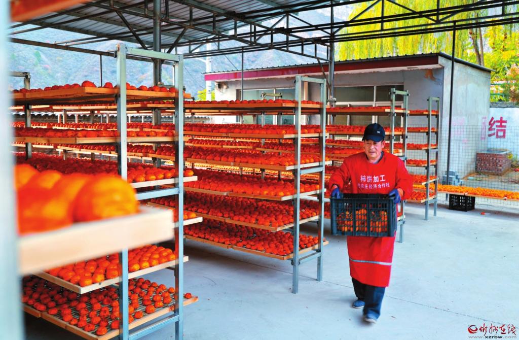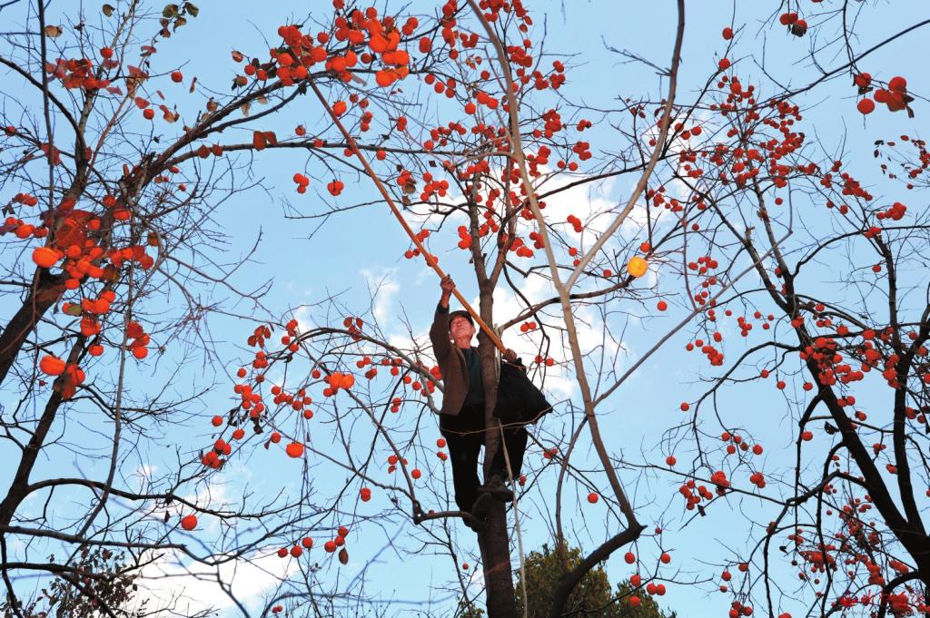 這個季節(jié),東峪便成為網(wǎng)紅打卡地,吸引了遠(yuǎn)近無數(shù)的游人。這樣的美景,最宜天晴時靜賞,紅柿,藍天,冷暖相宜,濃淡有致,組成了一幅絕美的秋韻圖。這個季節(jié),也是農(nóng)戶的豐收季,一家人都出動,把柿子摘下,在院子里晾曬,滿院子甘甜美味,是煙火人間里最真切的幸福,心里也會生出喜悅和希望。(本報記者 聶艷英)