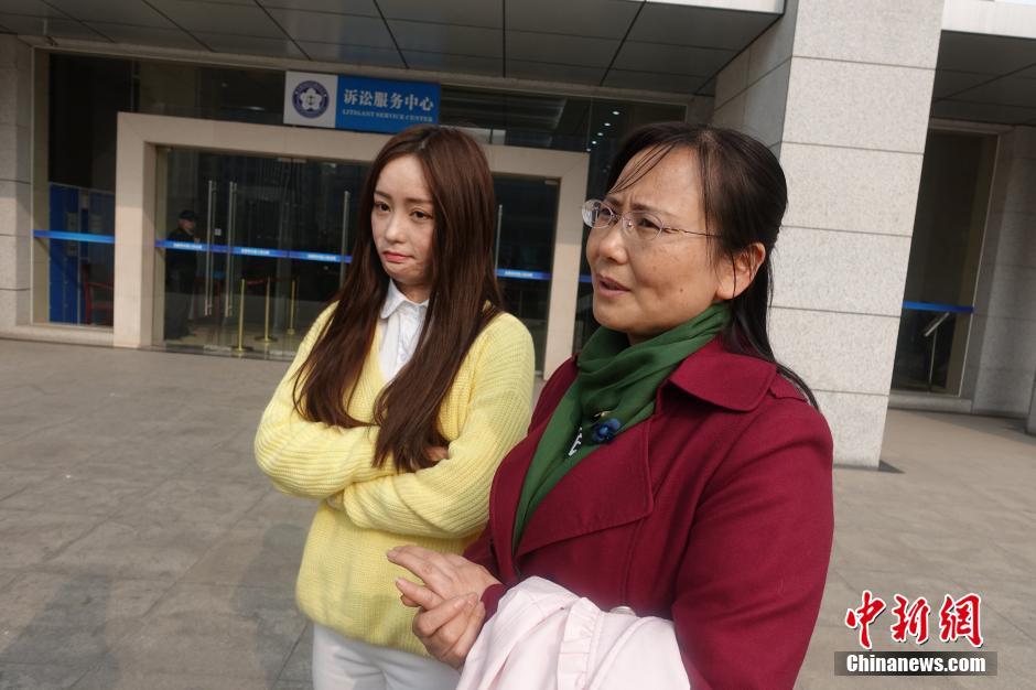 3月22日,周巖(左)和母親在庭外等待宣判結果。中新社記者張婭子 攝