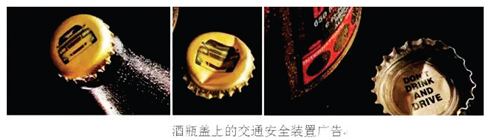 美國將警示語作為酒品包裝的強(qiáng)制性標(biāo)注內(nèi)容,要求飲料,酒的品牌標(biāo)簽、獨立的前標(biāo)簽或者背標(biāo)簽、側(cè)標(biāo)簽都應(yīng)獨立,并有別于標(biāo)簽中其他信息地標(biāo)示:“政府警示,根據(jù)普通外科醫(yī)生建議,孕婦不應(yīng)該飲酒,以防止新生兒缺陷,飲酒會減弱個人駕駛車或操控機(jī)械的能力并可能引發(fā)健康問題?!贝送?國外的產(chǎn)品包裝設(shè)計上也植入了公益理念。如上圖廣告可對飲酒人群針對性的進(jìn)行廣告宣傳,采用打開酒瓶蓋必須以破壞“車輛”為代價的形式,傳達(dá)喝酒不能開車的安全理念。