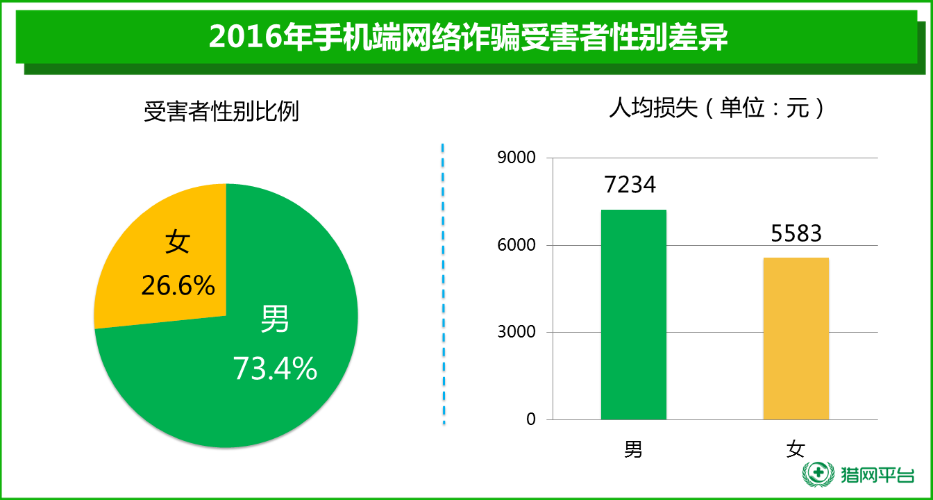 面對(duì)網(wǎng)絡(luò)詐騙,男性和女性誰(shuí)更容易上當(dāng)受騙?不法分子最愛(ài)“瞄準(zhǔn)”哪個(gè)年齡段的人群,70、80還是90后?近日,這對(duì)電信詐騙的年齡與性別分布,360手機(jī)衛(wèi)士發(fā)布的《2016年中國(guó)手機(jī)安全狀況報(bào)告》給出了明確的答案,讓不少人大跌眼鏡。
