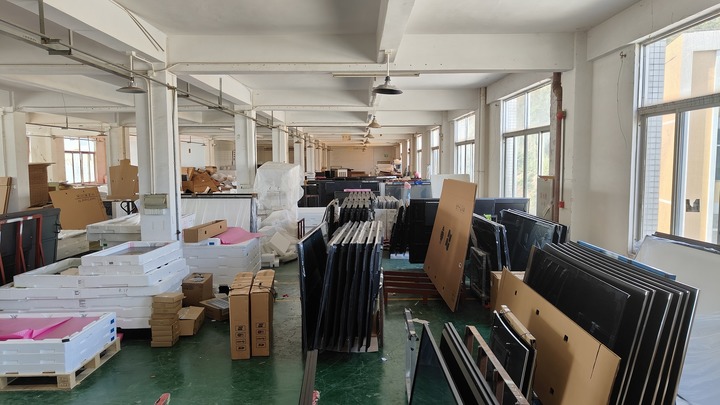 專案組查處違法組裝電視機(jī)的車(chē)間時(shí)發(fā)現(xiàn),庫(kù)房?jī)?nèi)堆積著大量電視機(jī)外殼、主板和白板顯示屏,還有很多品牌透明貼紙,以及部分準(zhǔn)備發(fā)出和退回的假冒品牌電視機(jī)。