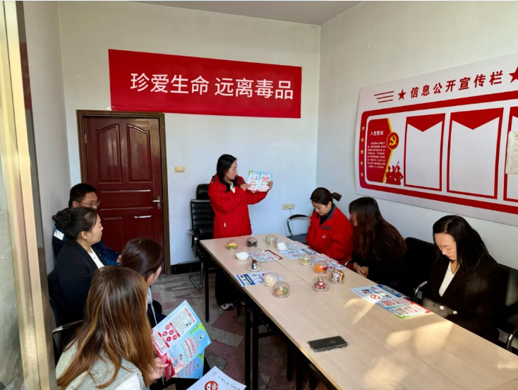 活動中,社工在保險公司醒目位置張貼懸掛禁毒標語條幅,并在服務大廳電視機上輪播禁毒宣傳片,向公司員工和客戶講解毒品的種類、危害和識別防范技巧,提醒大家要自覺遵守法律法規(guī),不斷加強禁毒知識的學習,切實提高識毒、防毒、拒毒意識,做到不種毒、不制毒、不販毒、不吸毒。同時,民警還結(jié)合真實案例,向大家深入講解了毒品對個人、家庭和社會帶來的嚴重危害,通過講解,使大家對毒品有了更為清晰和深刻的認識,鼓勵大家積極當好禁毒宣傳員,引導家人、親戚朋友拒絕毒品,遠離毒品。