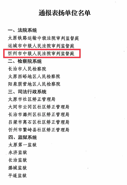 喜報(bào)!忻州中院審判監(jiān)督庭獲評(píng)全省減假暫工作表現(xiàn)突出單位