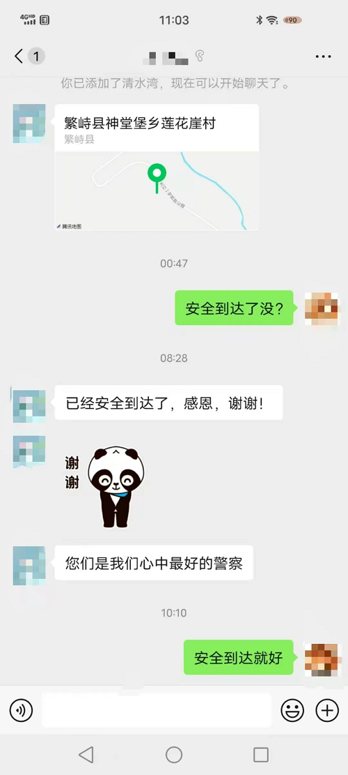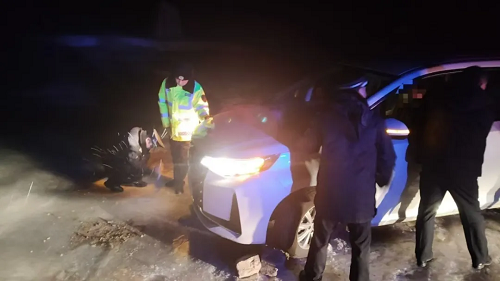 接到報(bào)警后,神堂堡派出所民警迅速通過電話聯(lián)系報(bào)警人,得知車上共有七人,多為婦女兒童,民警首先安撫游客情緒,并在確定具體地點(diǎn)后,立即與神堂堡交警中隊(duì)民警驅(qū)車趕往事發(fā)地。到達(dá)現(xiàn)場后,民警了解到,報(bào)警人張某與家人朋友自駕前往五臺(tái)山旅游,開到蓮花崖大峽谷山區(qū)路段時(shí)由于路面有冰導(dǎo)致車輛打滑沖出路面,車輛正被困在一處斜坡處,距離前面的深溝只有一米左右,進(jìn)退兩難,無法動(dòng)彈。此時(shí),車上幾名游客已凍得瑟瑟發(fā)抖,情況不容樂觀。民警們第一時(shí)間制定救援措施,他們不畏嚴(yán)寒、相互配合,經(jīng)過長時(shí)間的努力,終于將被困車輛從冰面推到了無冰路段。車輛脫困,游客對(duì)民警們的及時(shí)救援表示了由衷的感謝,緊緊握住民警的手,激動(dòng)地說:“非常感謝警察同志的幫助,您們是我們心中最好的警察!”