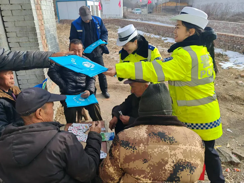 1月29日,五臺縣公安局交管大隊綜合中隊宣傳民輔警走進國道338沿線東馬村、興鄭村,開展“平安春運 交警同行”主題宣傳活動,將交通安全知識送到田間地頭、農家院落,為即將到來的春運保駕護航。