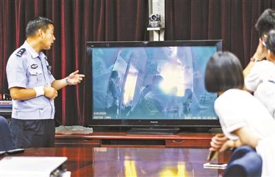 民警根據(jù)當(dāng)時(shí)拍攝的畫面講述事發(fā)經(jīng)過 攝影/本報(bào)記者 汪震龍