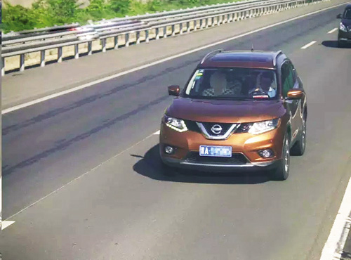 6月16日8時(shí)46分,一輛牌照為晉A××××的棕色尼桑小轎車行駛至G20高速955KM+270M處時(shí),被監(jiān)控設(shè)備抓拍下來。圖像顯示,該車身著白色上衣的駕駛?cè)苏糜沂纸勇犽娫挘⑶覜]有系安全帶。