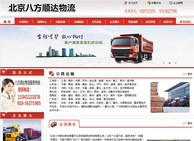 由于時間緊急,平常聯(lián)絡(luò)的物流公司暫時沒車,配送不了。當(dāng)天,該公司的行政人員從網(wǎng)絡(luò)上搜索武漢到北京的物流專線,發(fā)現(xiàn)一家名為“八方順達(dá)物流”的公司,紅色主頁的網(wǎng)站上,顯示有客服電話、物流、接單、登記、調(diào)用安排、在途追蹤等具體信息。