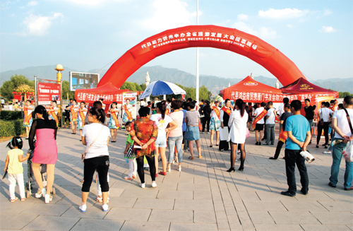活動現(xiàn)場,社會各團(tuán)體和商家特意為參與投票的群眾準(zhǔn)備了罐頭、手提包、扇子等紀(jì)念品。志愿者們詢問過往群眾的投票情況,有的手舉印有投票二維碼的牌匾、有的打開公用wifi 等為群眾投票提供方便,還有的身著動物服裝吸引過往群眾進(jìn)行拉票。這些社會團(tuán)體和商家的舉動,讓過往群眾很受感動,他們都積極拿出手機(jī)為家鄉(xiāng)、為忻州投上自己寶貴的一票。圖為活動現(xiàn)場(楊瑾)
