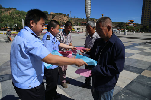 6 月24日,靜樂(lè)縣公安局在該縣街頭多處設(shè)點(diǎn)開(kāi)展禁毒宣傳活動(dòng),通過(guò)掛橫幅、立展板、發(fā)放宣傳資料、現(xiàn)場(chǎng)解答群眾咨詢(xún)等方式大力宣傳毒品的危害性?;顒?dòng)當(dāng)日,共發(fā)放禁毒宣傳資料3500 余份,擴(kuò)大了禁毒宣傳覆蓋面,使廣大群眾自覺(jué)抵制毒品危害的意識(shí)進(jìn)一步得到了提高。(李敏 攝)