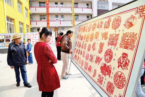 近日,靜樂(lè)縣利民小學(xué)舉辦校園書(shū)法、繪畫和剪紙作品展。據(jù)悉,此次活動(dòng)共收到美術(shù)作品300 余件、書(shū)法作品300 余件、剪紙作品600 件。通過(guò)一件件作品表達(dá)了孩子們對(duì)美麗“中國(guó)夢(mèng)”的憧憬。圖為學(xué)生和家長(zhǎng)在參觀展覽。(閆曉梅 攝)