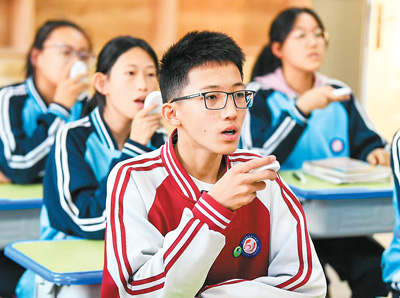 昆都侖區(qū)一所中學(xué)的學(xué)生使用英語聽說學(xué)習(xí)平臺進行練習(xí)。昆都侖區(qū)教育局供圖