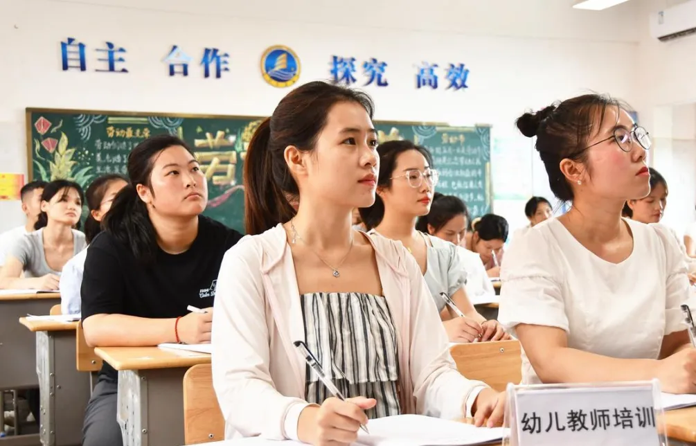 2024年8月23日,湖南省永州市江永縣金海明禮學校,參加暑期教師培訓的老師在認真聽課。田如瑞 攝