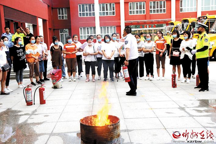 本報(bào)訊 為扎實(shí)做好校車消防安全工作,進(jìn)一步提高識(shí)險(xiǎn)、避險(xiǎn)意識(shí),杜絕重大安全事故的發(fā)生,7月31日,河曲縣教育系統(tǒng)在長(zhǎng)城小學(xué)組織開展全縣校車消防安全培訓(xùn)暨校車應(yīng)急演練活動(dòng)??h教科局、公安局、交警隊(duì)、應(yīng)急局相關(guān)負(fù)責(zé)人,有校車的幼兒園負(fù)責(zé)人及司機(jī)、跟車人員、班主任參加了活動(dòng)。