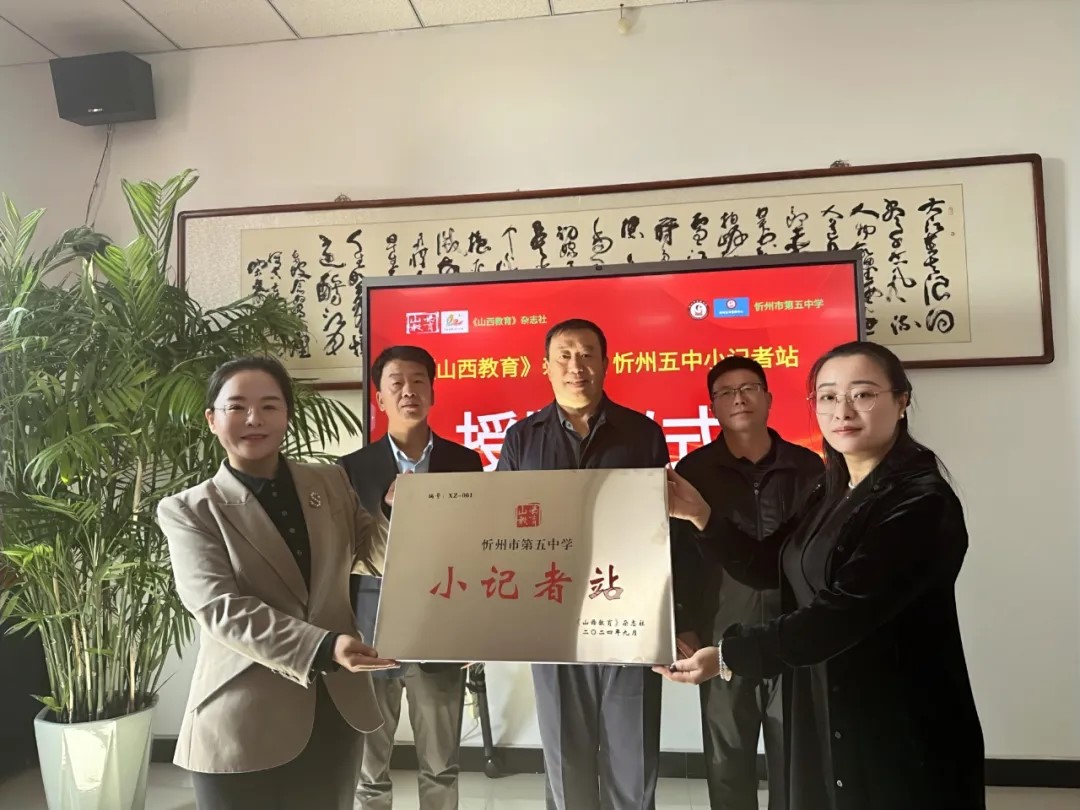 10月12日上午,《山西教育》雜志社與忻州市第五中學的交流會暨《山西教育》小記者站授牌儀式在忻州市第五中學舉行。忻州五中專職副書記楊潤林、副校長王小平、王俊、宣教中心主任王向榮,《山西教育》雜志社副總編張妤等參與了此次活動。