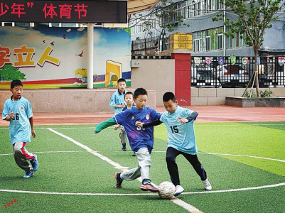 當(dāng)天下午,太原市雙東小學(xué)的大課間鈴聲準(zhǔn)時(shí)響起——“走,練射門去!”六年級(jí)學(xué)生張浩宇一把抓起足球,和隊(duì)友們直奔操場。上、下午各30分鐘的陽光大課間正有序開展,韻律操、武術(shù)操的音樂響徹校園。