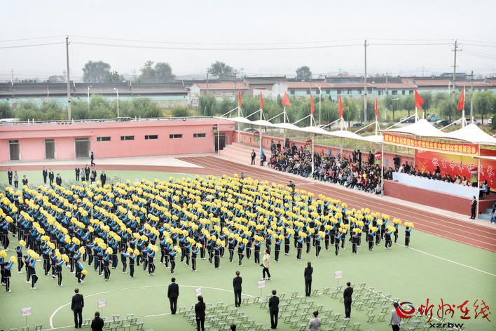 9月27日上午10點(diǎn)整,寬闊的綠茵操場上,彩旗飄揚(yáng),鼓樂喧天。由700多名小學(xué)生組成的整齊的方陣,在環(huán)形跑道上健步前行。鮮花舞動(dòng),口號(hào)震天。看臺(tái)上人頭攢動(dòng),掌聲如潮……這是繁峙縣教育科技局在筆峰小學(xué)組織召開的全縣農(nóng)村寄宿制小學(xué)課程改革交流研討暨培訓(xùn)活動(dòng)七大程序中的第三項(xiàng)內(nèi)容——文體藝術(shù)成果大型展示的入場式。