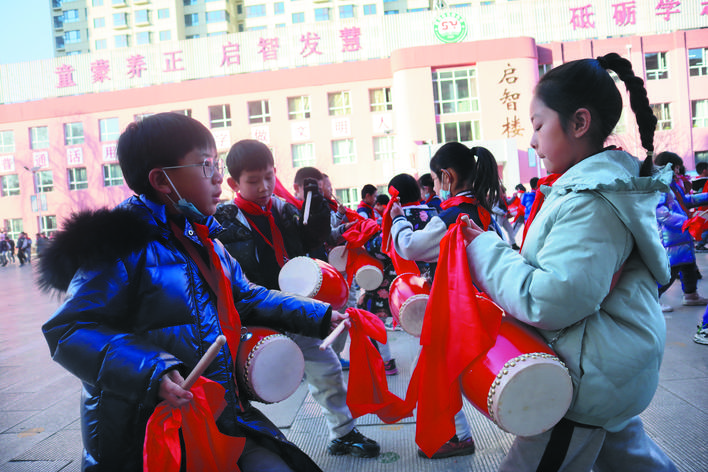 作為一種歷史悠久的傳統(tǒng)民族藝術(shù),腰鼓節(jié)奏歡快,鼓聲清脆悅耳。由孩子們展示這種藝術(shù)形式,更能張揚(yáng)出獨(dú)特的藝術(shù)性,同時(shí)練招式、講秩序,長知識(shí)、練思辨。由來自全校的100名學(xué)生組成的腰鼓隊(duì)是市實(shí)驗(yàn)小學(xué)精心打造的一支規(guī)模相對較大的隊(duì)伍。董海燕老師是腰鼓隊(duì)的三位帶隊(duì)老師之一,還兼任198班的班主任,緊張的課堂教學(xué)之余,還要積極參與到教孩子們打腰鼓的第二課堂活動(dòng)中,董老師說,下一步,學(xué)校準(zhǔn)備打造千人腰鼓隊(duì),讓更多的孩子了解和掌握打腰鼓的技巧、技法,更好地弘揚(yáng)中華民族的傳統(tǒng)藝術(shù)。