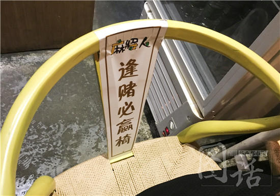 店內(nèi)寫(xiě)有“逢賭必贏”的椅子。