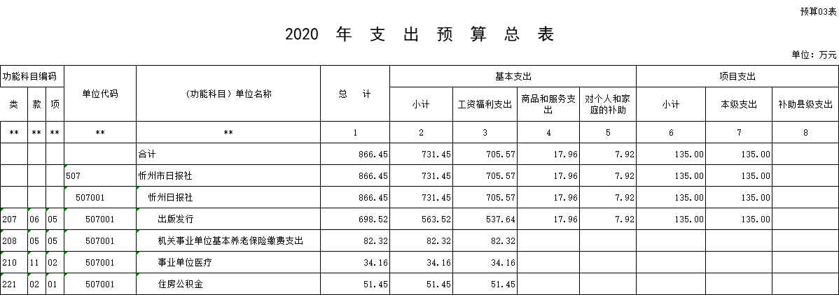 忻州日報(bào)社2020年度部門預(yù)算及“三公”經(jīng)費(fèi)預(yù)算公開情況