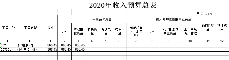 忻州日報(bào)社2020年收入預(yù)算866.45萬元,比2019年增加15.62萬元。