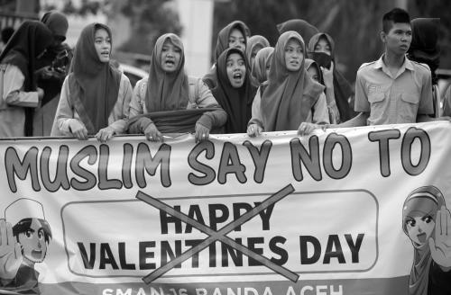 然而,在世界上一些觀念相對(duì)保守的國(guó)家或地區(qū),情人節(jié)仍然受到不同程度的抵制。據(jù)英國(guó)《每日郵報(bào)》13日?qǐng)?bào)道,在印尼亞齊省一些地區(qū),慶祝情人節(jié)仍被視為“不法行為”,并被政府當(dāng)局嚴(yán)令禁止。該省首府城市班達(dá)亞齊禁止市民互相贈(zèng)送賀卡或巧克力。該市市長(zhǎng)伊里查說(shuō):“我們的社區(qū)和穆斯林年輕人不應(yīng)慶祝非伊斯蘭教的節(jié)日……政府當(dāng)局有義務(wù)預(yù)防公眾和年輕一代人從事不法行為?!睋?jù)稱,當(dāng)?shù)貓?zhí)法人員將在情人節(jié)前后加緊巡邏,嚴(yán)查送花或贈(zèng)送禮物等行為。