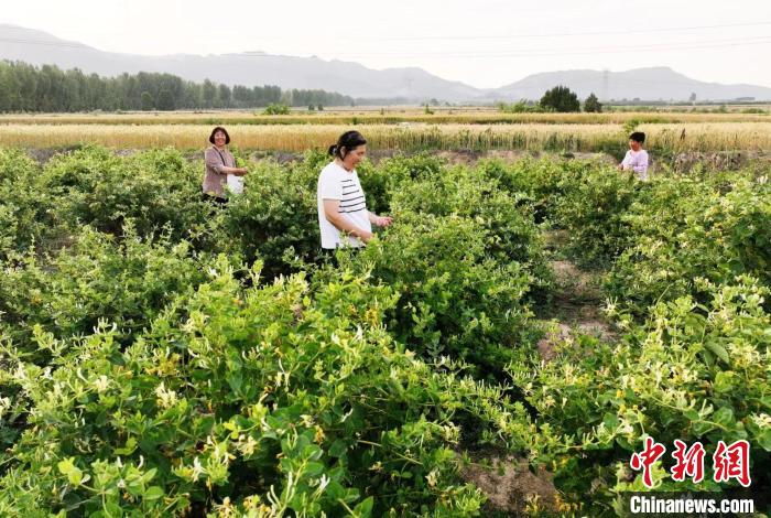 “三夏”大忙時節(jié),呂梁山脈姑射山下,山西省運(yùn)城市新絳縣澤掌鎮(zhèn)喬溝頭、吳嶺莊、光村等村,千畝金銀花喜獲豐收,花農(nóng)們正采摘搶收。近年來,當(dāng)?shù)匾浴盎ā睘椤懊健保掷m(xù)加大果、藥等產(chǎn)業(yè)發(fā)展,成為鄉(xiāng)村振興“新動力”。