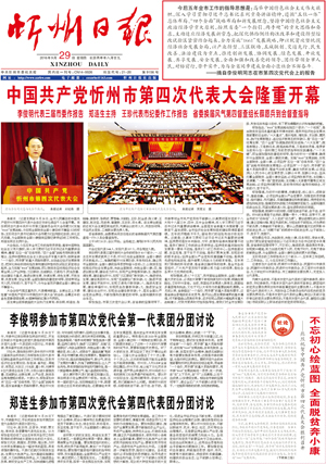 9月28日至30日,全市人民矚目的中國共產(chǎn)黨忻州市第四次代表大會勝利召開。大會高舉中國特色社會主義偉大旗幟,深入學(xué)習(xí)貫徹習(xí)近平總書記系列重要講話精神,遵循“五位一體”總體布局、“四個全面”戰(zhàn)略布局和新發(fā)展理念,按照省委“一個指引、兩手硬”重大思路和要求,全面總結(jié)了過去五年全市發(fā)展的基本經(jīng)驗,確立了一個統(tǒng)攬、六大重點、六大發(fā)展、一個關(guān)鍵的“1661”發(fā)展戰(zhàn)略,明確了今后五年的奮斗目標(biāo)和主要任務(wù),選舉產(chǎn)生了中共忻州市第四屆委員會和中共忻州市紀(jì)律檢查委員會,在忻州發(fā)展史上具有重大里程碑意義。(2016年9月29日《忻州日報》)