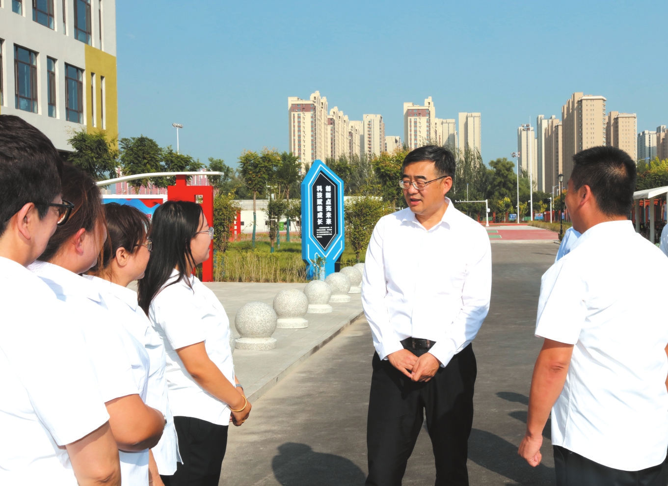 市委副書記、市長李建國在忻州市第五中學慰問一線教師。本報記者范濤攝 又訊(記者任逢春)9月9日,市委副書記、市長李建國深入忻州十二中、十中、五中、外國語學校和龍翔小學開展教師節(jié)慰問活動,向廣大教師和教育工作者致以節(jié)日祝賀和誠摯問候。市政府秘書長張艮生,市委編辦和市教育、人社等部門負責人參加。 經(jīng)過幾年來在教育領(lǐng)域的連續(xù)投入,我市的學校布局優(yōu)化、校舍新建改造、設(shè)施更新提升、教師人才充實等工作成效逐步顯現(xiàn),一批新校園、新校舍、新設(shè)施等紛紛啟用,成為忻州高質(zhì)量發(fā)展的潛力所在。李建國一行在各個學校看望慰問一線教師職工,察看改造中或已啟用的操場、建成啟用的教學樓和多功能教室等設(shè)施,耐心詢問新校區(qū)教師的切身感受、通勤等工作生活情況,詳細了解學校的服務(wù)半徑、師資力量、薪酬待遇等情況,感謝廣大教師扎根三尺講臺、傳道授業(yè)解惑,引導一屆屆學生樹立崇高理想和遠大志向,為忻州教育事業(yè)作出的無私奉獻。 李建國指出,教育是最大的民生,也是最大的民心,扎實的基礎(chǔ)教育是忻州高質(zhì)量發(fā)展最具后勁的基石。市委、市政府始終堅持把教育擺在優(yōu)先發(fā)展位置,聚焦民生所急,持續(xù)優(yōu)化優(yōu)勢教育資源布局,著力改善各級各類學校辦學條件,統(tǒng)籌各類教育發(fā)展。廣大教師和教育工作者要對標師德標兵和先進模范,以高尚的道德情操和人格魅力,堅持立德樹人根本任務(wù)不懈怠,堅持辦好人民滿意教育不放松,不斷提高教學質(zhì)量。各級各部門要一如既往支持教育,更加重視教師隊伍建設(shè),更好保障教師權(quán)益,大力弘揚尊師重教的社會風尚,真正讓廣大教師安心教書、全心育人,以高質(zhì)量教育成果不斷增強服務(wù)轉(zhuǎn)型發(fā)展的能力和水平。 (責任編輯:盧相?。?/span> |