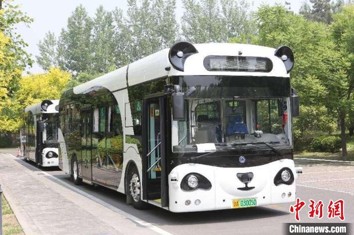 “熊貓智能公交車”在中新天津生態(tài)城上路運(yùn)行。 深蘭科技供圖